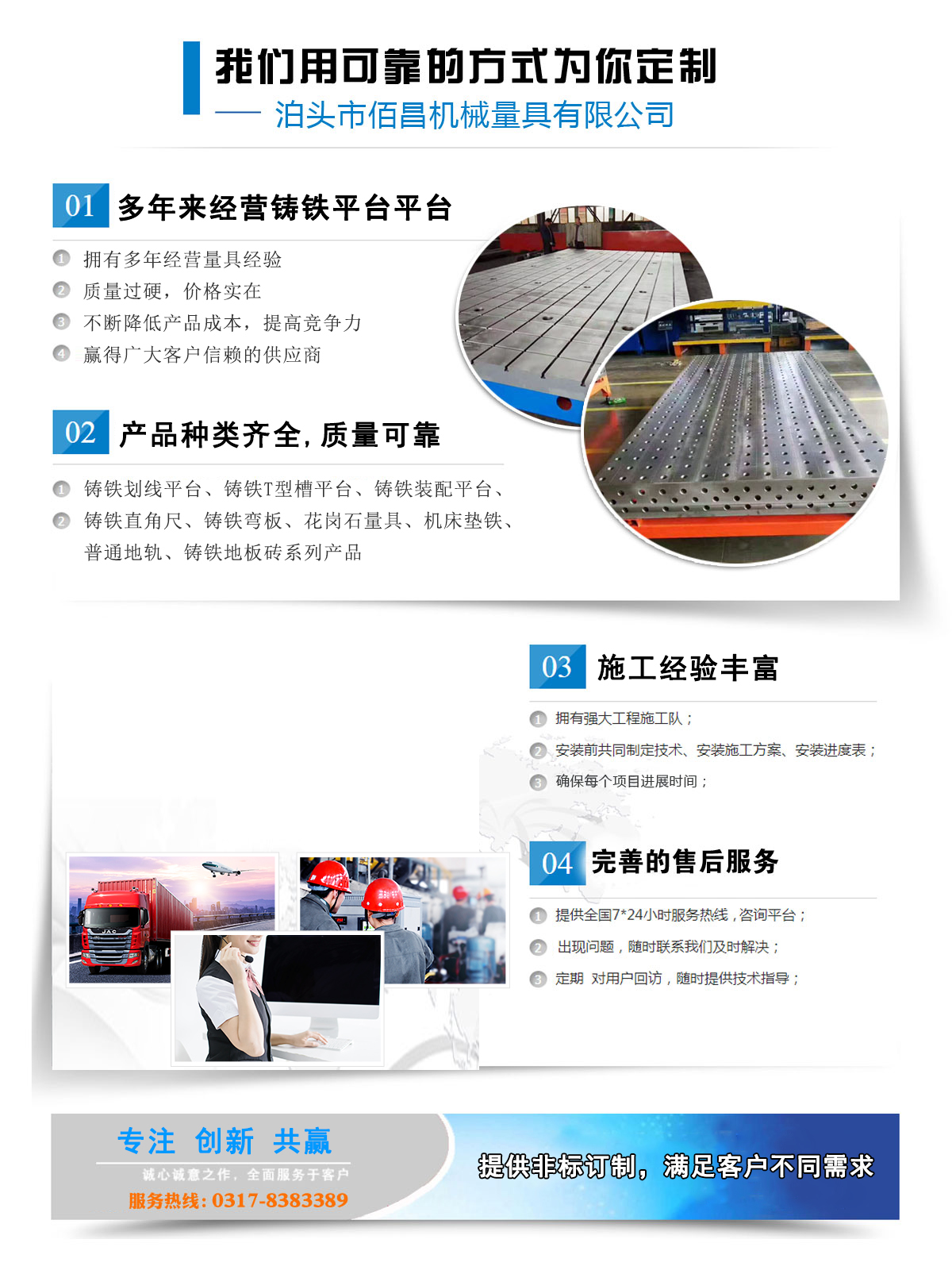 鑄鐵平板平臺系列鑄鐵地板系列大型機床鑄件系列三維柔性焊接平臺系列機床墊鐵系列地軌系列鑄鐵彎板系列鑄鐵方箱方筒系列鑄鐵V型架系列平尺、方尺系列花崗石大理石系列偏擺儀系列配重鐵系列特種扳手系列防爆工具系列量規系列建筑建材爬梯系列其他量具系列